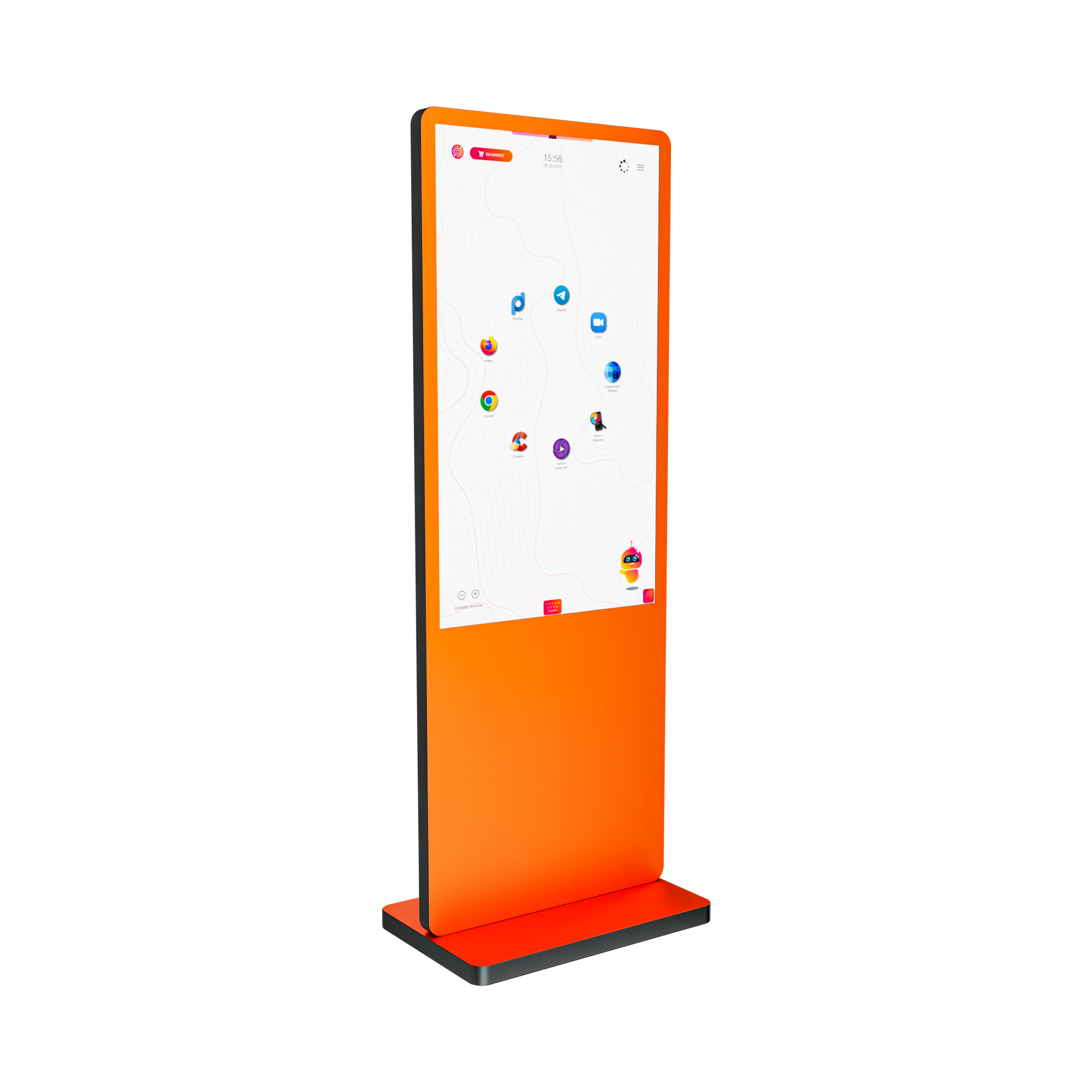 - Компактность и универсальность размещения — небольшая диагональ 32 дюйма и стильный тонкий корпус позволяют легко интегрировать киоск в любую обстановку: установить на стойку, встроить в мебель или закрепить на стене. Он не загромождает пространство и выглядит эстетично.