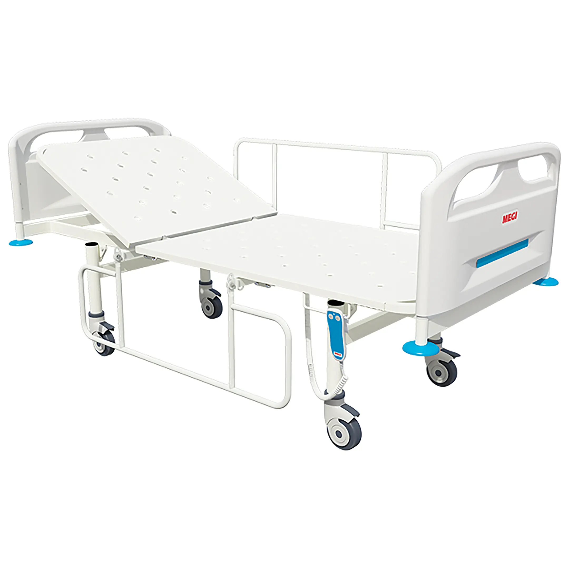 • ложе производится из перфорированных металлических панелей из стального листа толщиной 0,8 мм. Обеспечивает комфортное положение пациента на кровати и свободную вентиляцию подматрасного пространства;