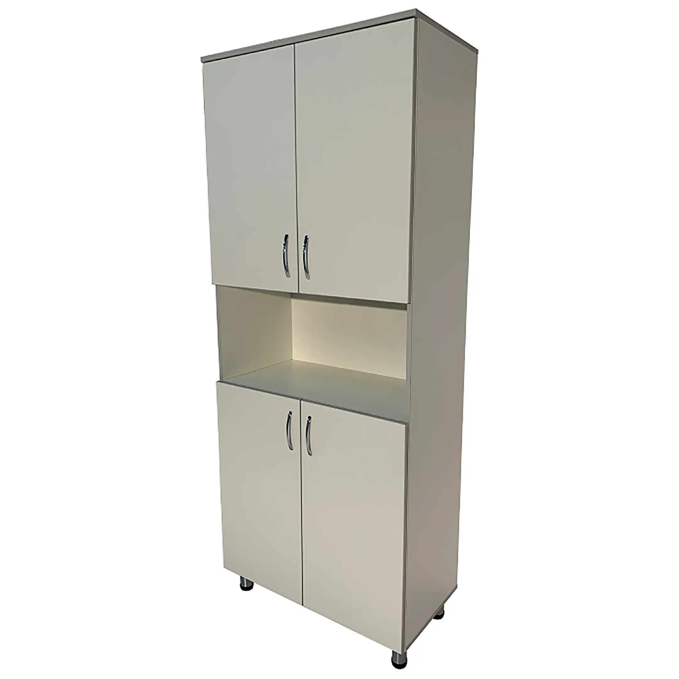 • Ниша шкафа разделена на отделения, что помогает эффективно организовать хранение и быстро находить необходимые материалы.