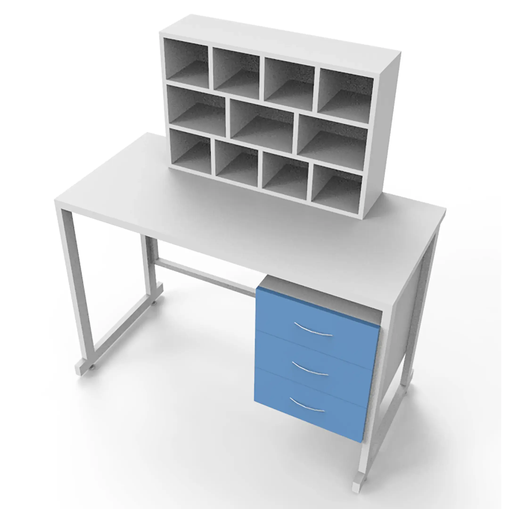 - Удобное хранение — боковая тумба с 3 выдвижными ящиками для хранения необходимых материалов и инструментов.
