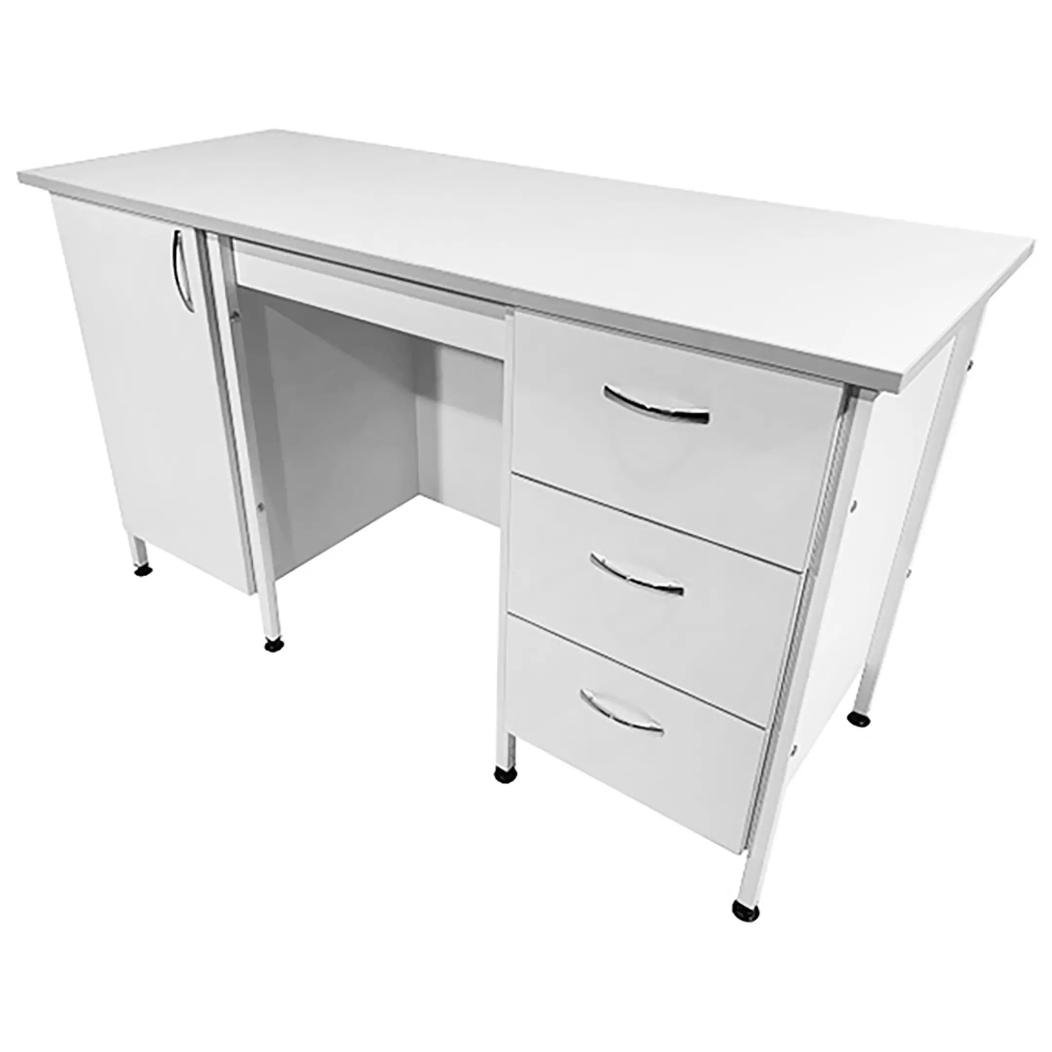 Стол лабораторный СЛ 12.016 (белый) идеально подойдет для организации рабочего пространства сотрудников в лабораториях и медицинских учреждениях. Модель оснащена тумбами с выдвижными ящиками и распашной дверкой. Каркас выполнен из стального профиля, столешница из ЛДСП толщиной 22 мм.