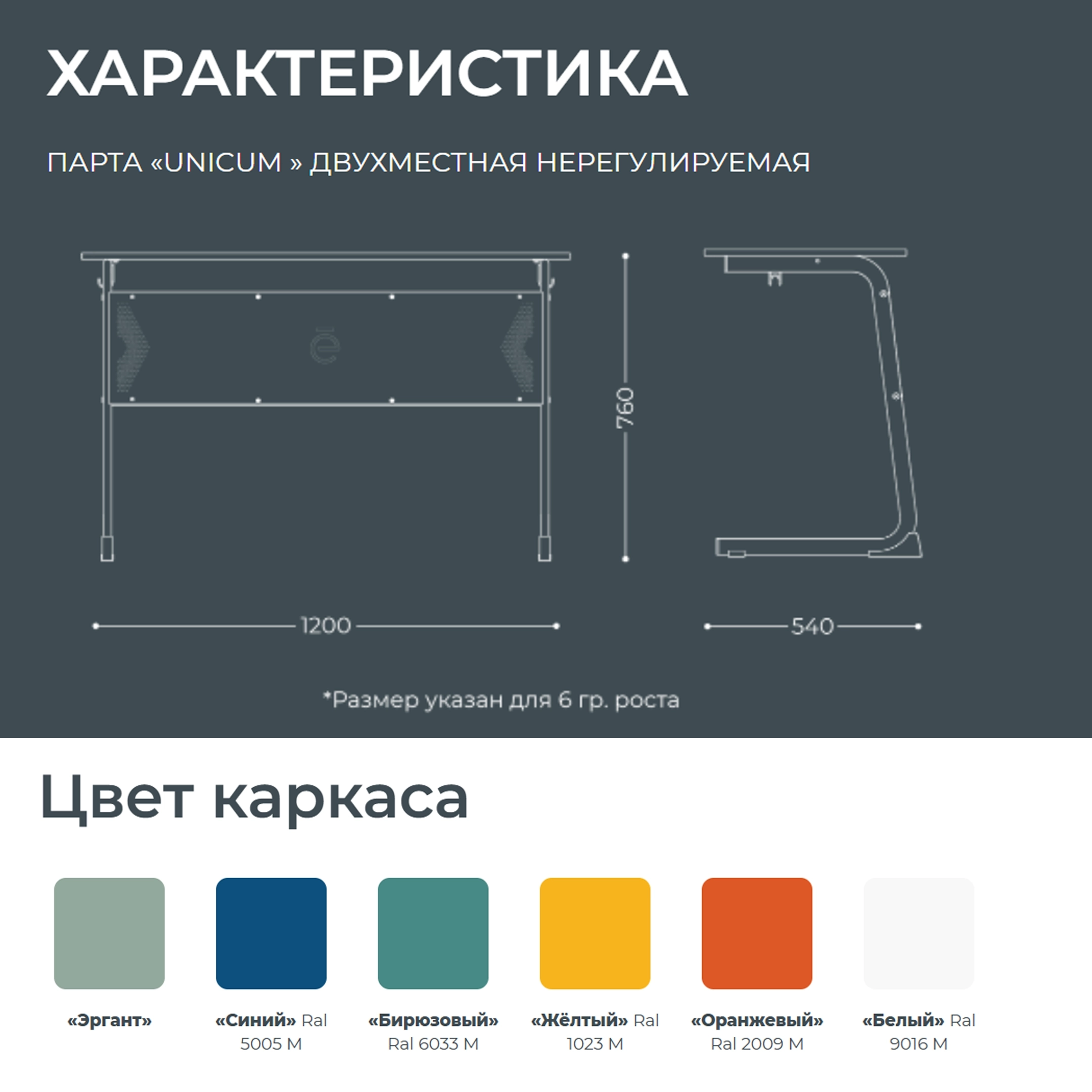 Школьная парта Unicum 2-местная (модель ПШ6/2) — это современная и функциональная мебель для организации учебных мест в образовательных учреждениях. Модель отличается уникальным дизайном, эргономичной конструкцией и повышенной прочностью, создавая комфортные условия для эффективного учебного процесса.