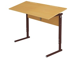 Стол с наклоном столешницы 0-35° школьный 2-местный 2-4 г/р регулируемый (бук, м/к коричневый, прямоугольная труба)
