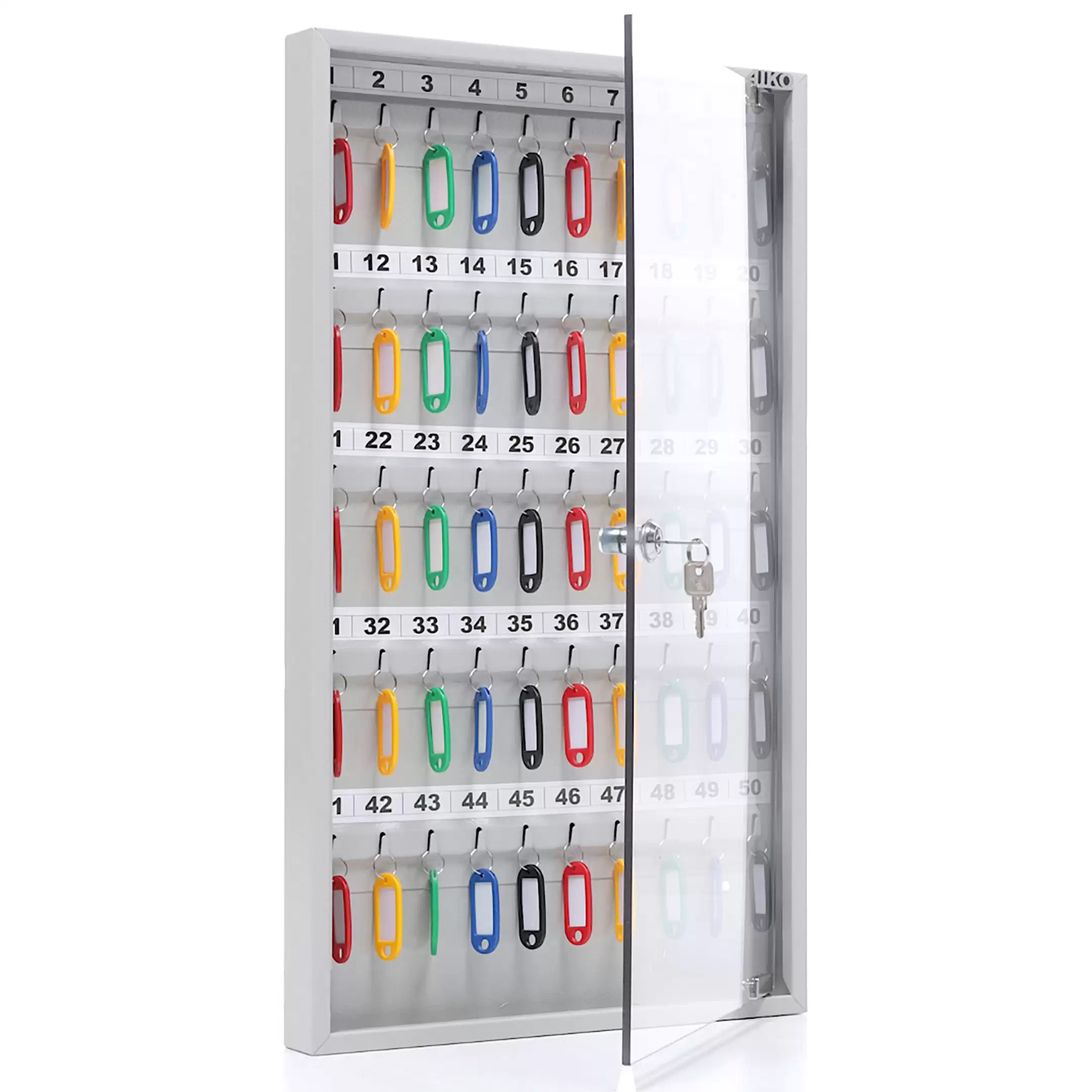 Ключница KEY-50 G (с брелками) — это стильная и функциональная настенная система для организованного хранения ключей в офисах, гостиницах и учреждениях. Комплект с брелками обеспечивает готовое решение для поддержания порядка, быстрого доступа и надежной защиты для 50 ключей.