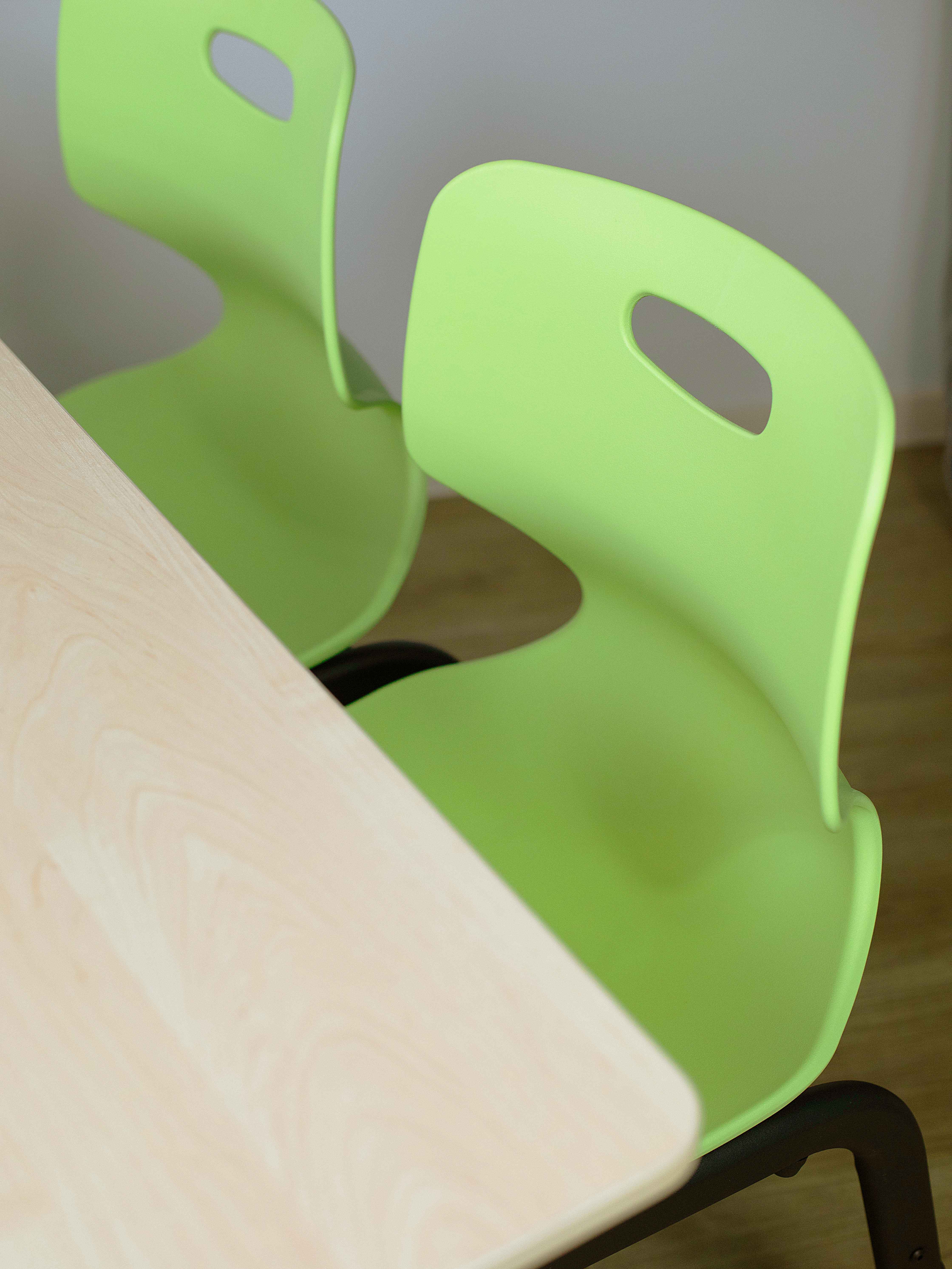 - Пластиковое сиденье и спинка — прочные, лёгкие и влагостойкие материалы, легко очищаются и долговечны.