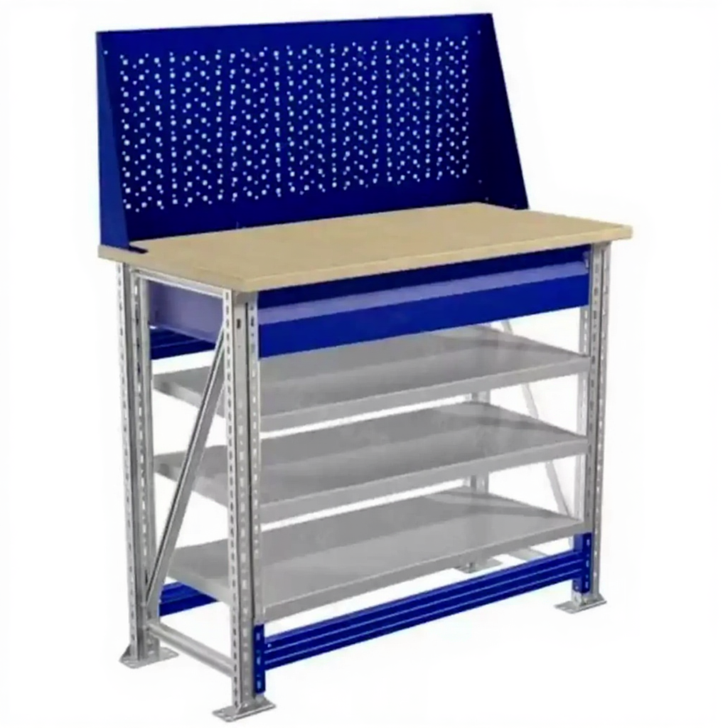 - Компактные размеры — столешница 1000х500 мм позволяет разместить верстак даже в небольших помещениях.