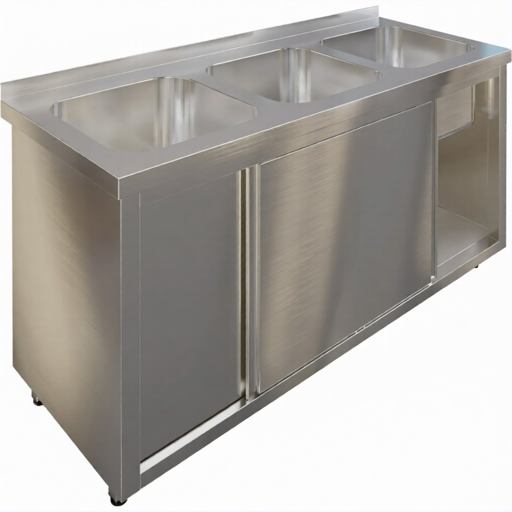 Стол производственный купе СПЗК3М-17/6-Б с моечной ванной и бортом предназначен для применения в моечных отделениях предприятий общепита и торговли различного формата, пищевых производств и пищеблоков для мытья посуды, кухонного инвентаря, продуктов питания и рук персонала. Также позволяет временно разместить кухонный инвентарь.