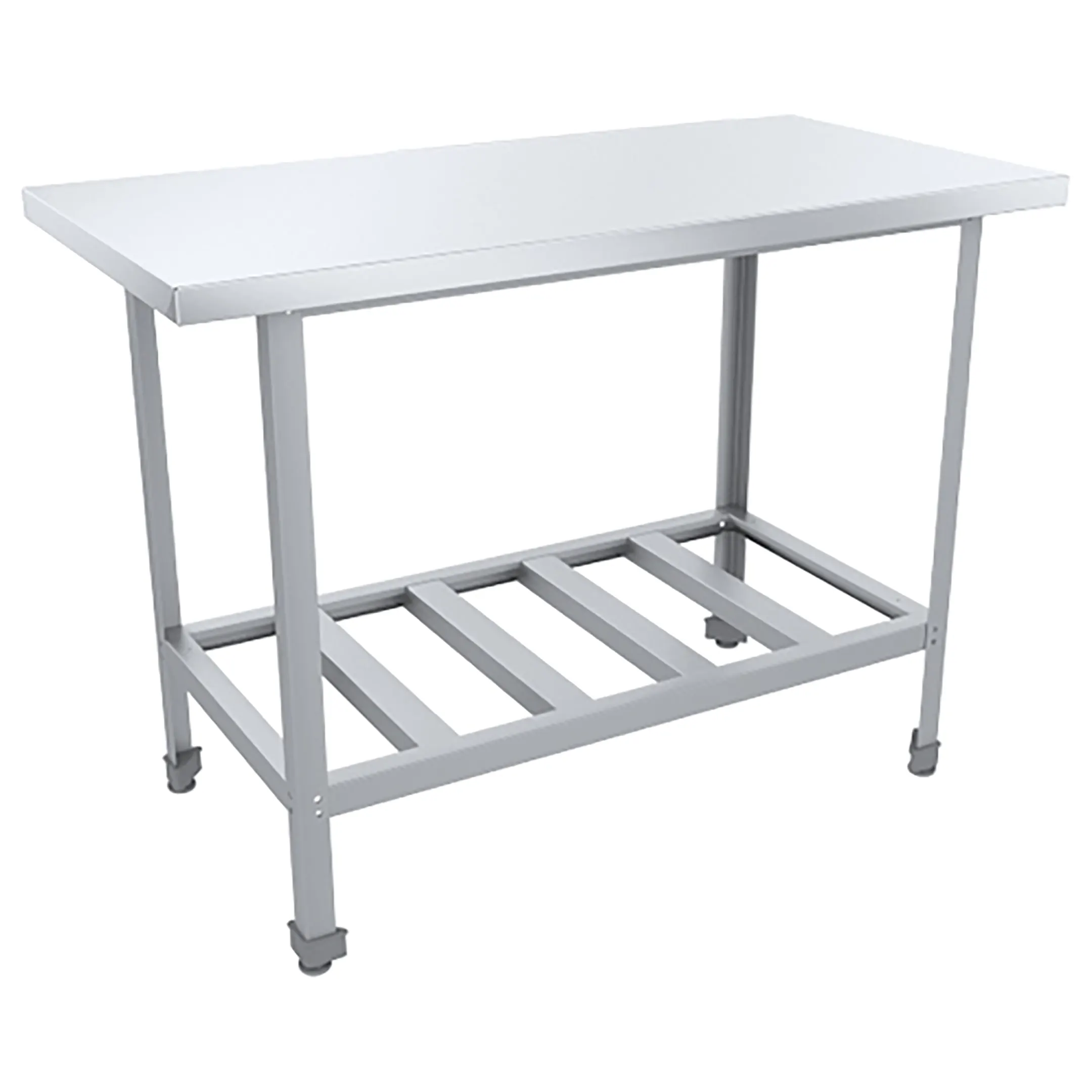 - Столы оснащаются полками-решетками или опционально сплошными полками из оцинкованной или нержавеющей стали, которые устанавливаются поверх полки-решетки.
