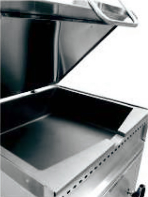 * Габаритные размеры 840×955×950 мм | Внутренние размеры чаши 754×622×197 мм | Площадь дна чаши 0,47 м2 | Номинальная вместимость чаши 70 дм3 | Время разогрева до 230 °C — 15 мин | Диапазон температур от +20 до +270 °C | Количество ТЭН-ов — 3 | Толщина дна чаши 10 мм | Механизм подъема и опускания чаши | Крышка фиксируется в любом положении | Регулируемые ножки.