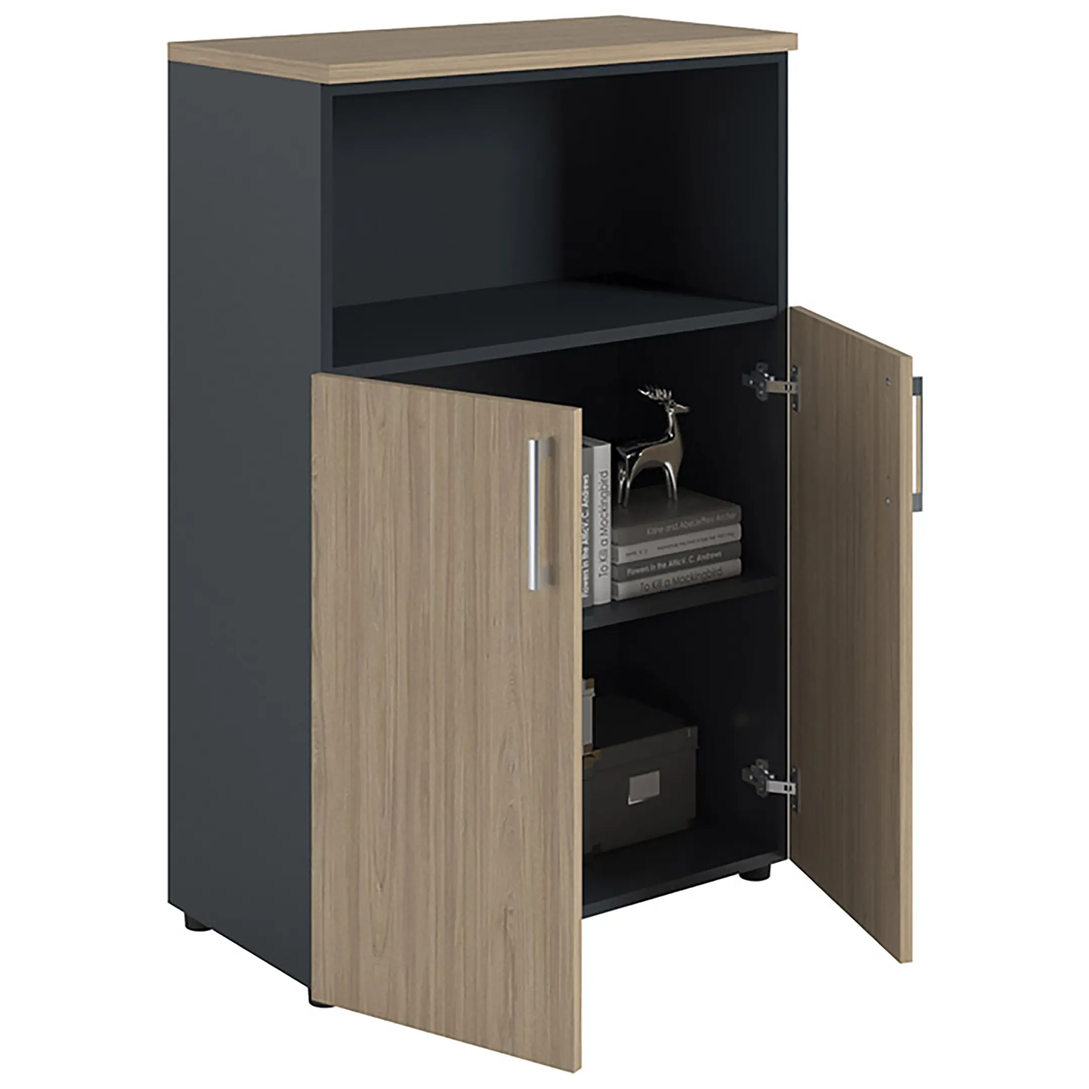 Шкаф NW 1280/2 полузакрытый вяз натуральный/антрацит предназначен для хранения.
