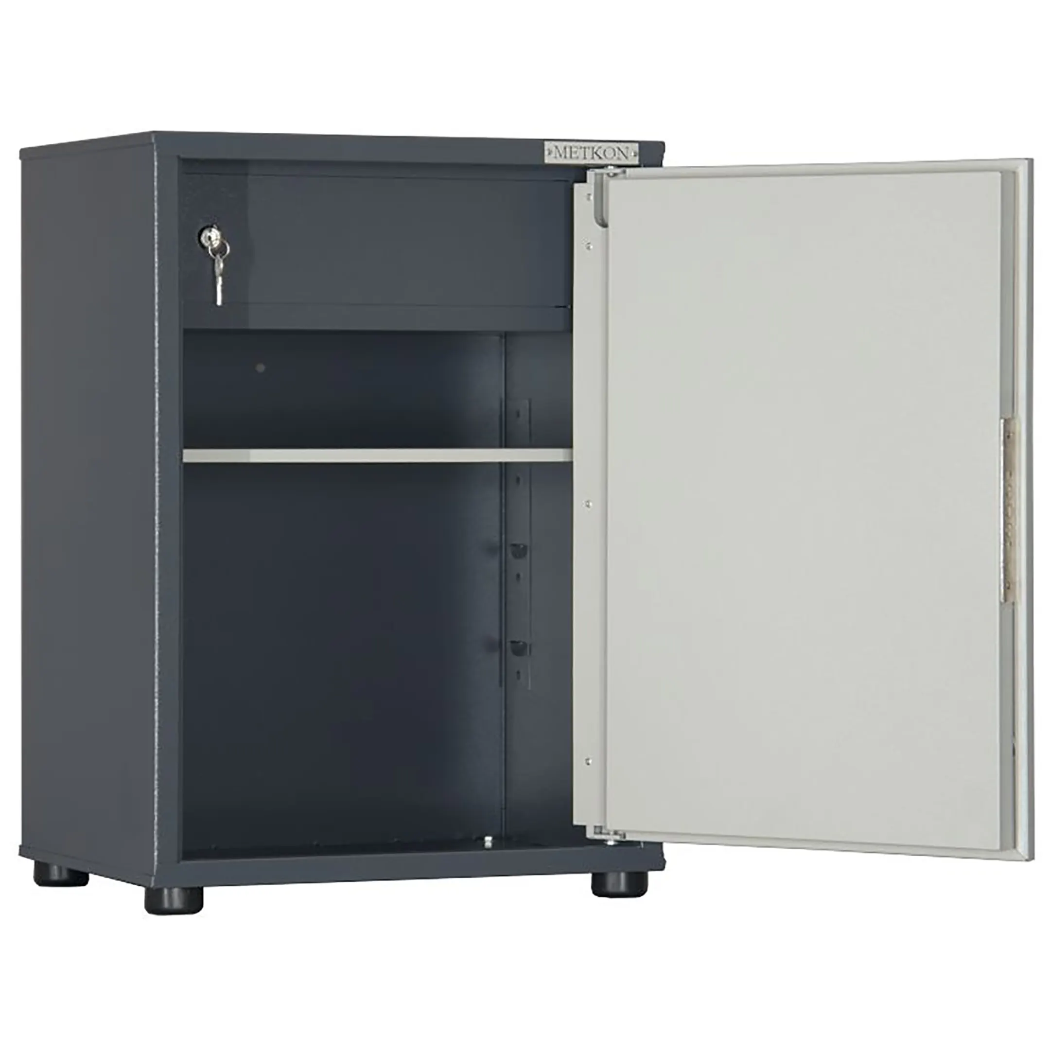- Надежная защита содержимого — две распашные дверцы оснащены встроенными замками с индивидуальными ключами, обеспечивая сохранность конфиденциальных документов и ценного имущества от несанкционированного доступа.