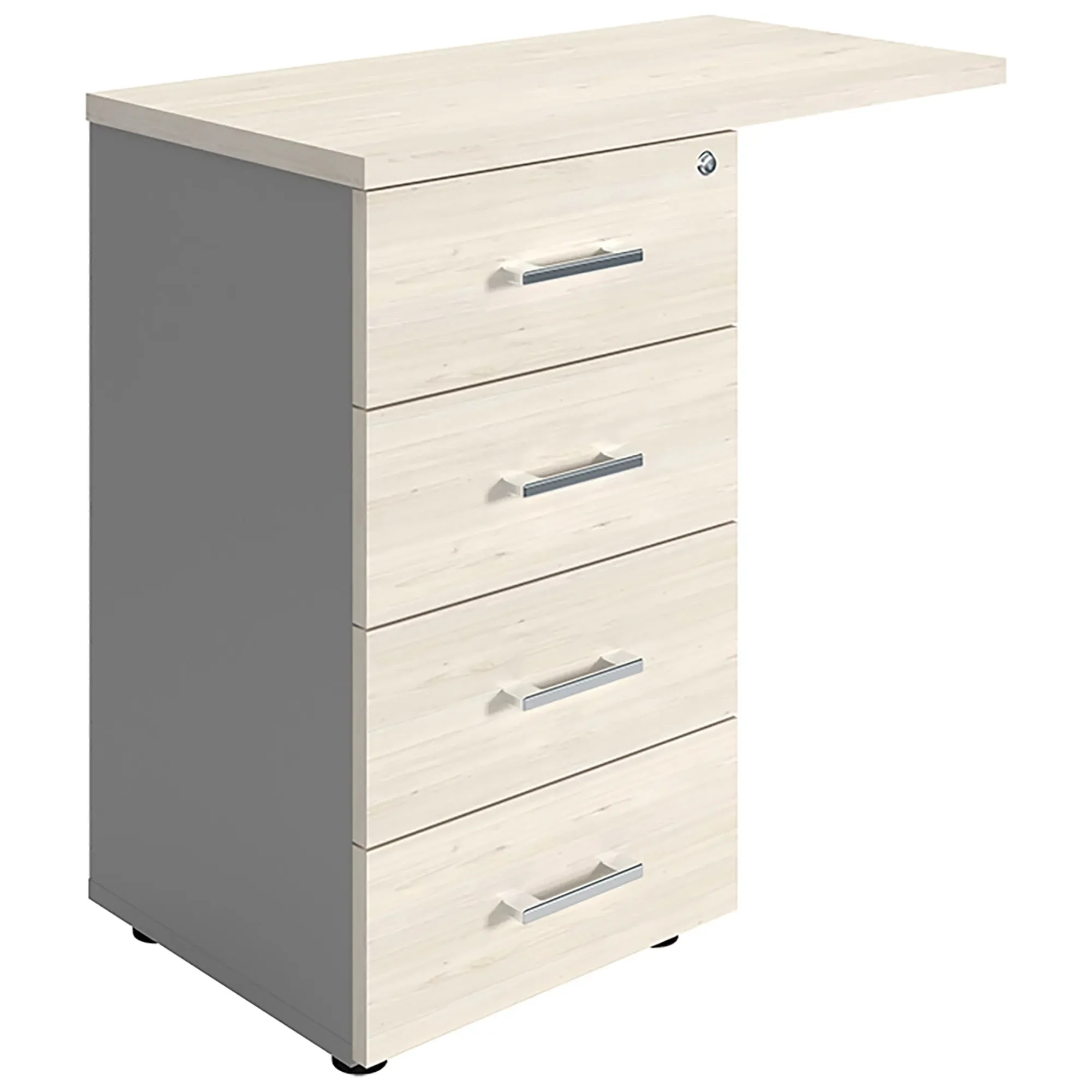 Тумба боковая NPW-408 L4 белое дерево/серый предназначена для систематизации и удобного хранения документации и канцелярских принадлежностей. Идеально подходит к офисным столам для организации рабочего пространства.