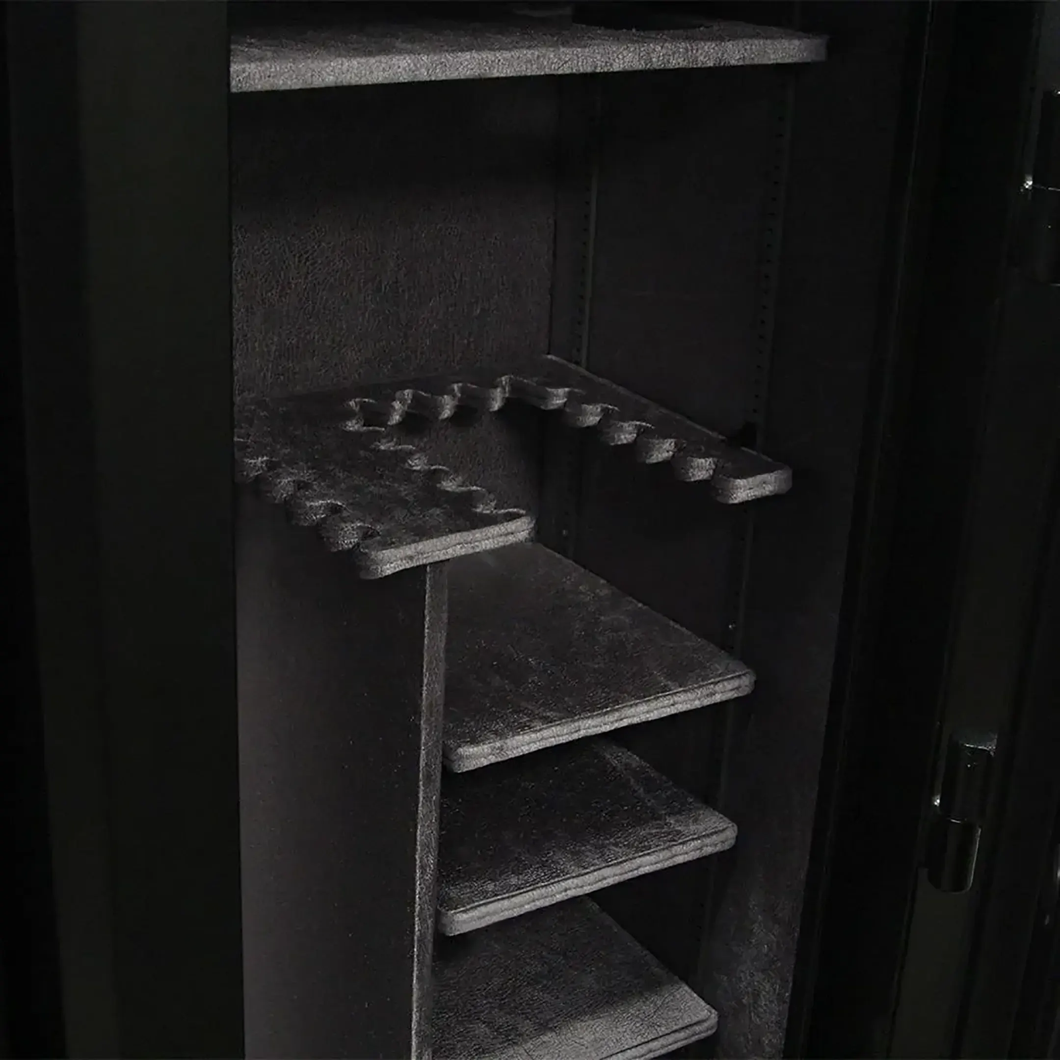 - Чтобы оружие хранилось в безопасности, требуется приобрести надежный сейф. Большой популярностью пользуется модель American Security L26-E знаменитого производителя из США. Хранилище обладает правильно продуманной конструкцией, благодаря чему в нем одновременно можно разместить до 24 стволов. Дополнительно оно оснащается 4 удобными полками для хранения всевозможных оружейных принадлежностей. Внутренняя отделка выполнена из качественного и мягкого сукна, которое препятствует образованию на стволах мелких потертостей, царапин и других механических повреждений. Производитель для создания оружейного сейфа применил прочную, надежную и устойчивую к негативным внешним воздействиям сталь. Весит конструкция 389 кг. Крепится она непосредственно к полу. Приятно удивляют и грамотно продуманные габариты хранилища. Его ширина составляет 762 мм, высота - 1500 мм, глубина - 559 мм. Таких показателей вполне хватает для бережного хранения оружия. Доступ к содержимому закрыт благодаря электронному кодовому замку. Чтобы открыть дверцу, владельцу сейфа требуется правильно ввести секретный код. Электронный замок удобней механического, но это не значит, что злоумышленнику удастся его вскрыть. Дело в том, что после неправильного ввода комбинаций замок автоматически блокируется. Он обеспечивает надежную защиту от взлома.