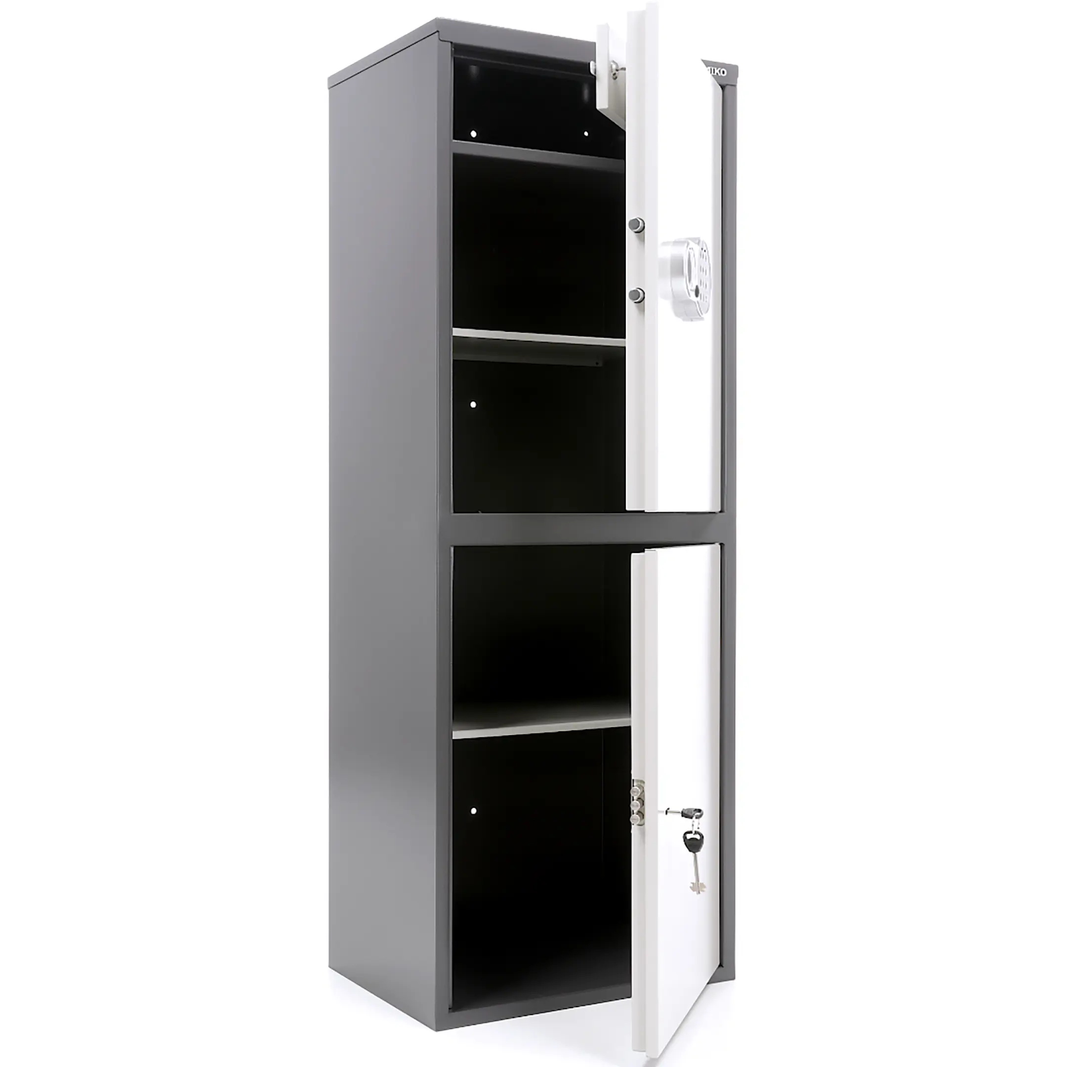 - комплектуется ключевыми замками "Практик" и электронный замок PLS-1( электронный замок устанавливается только на верхнюю дверь, на остальные – ключевой);